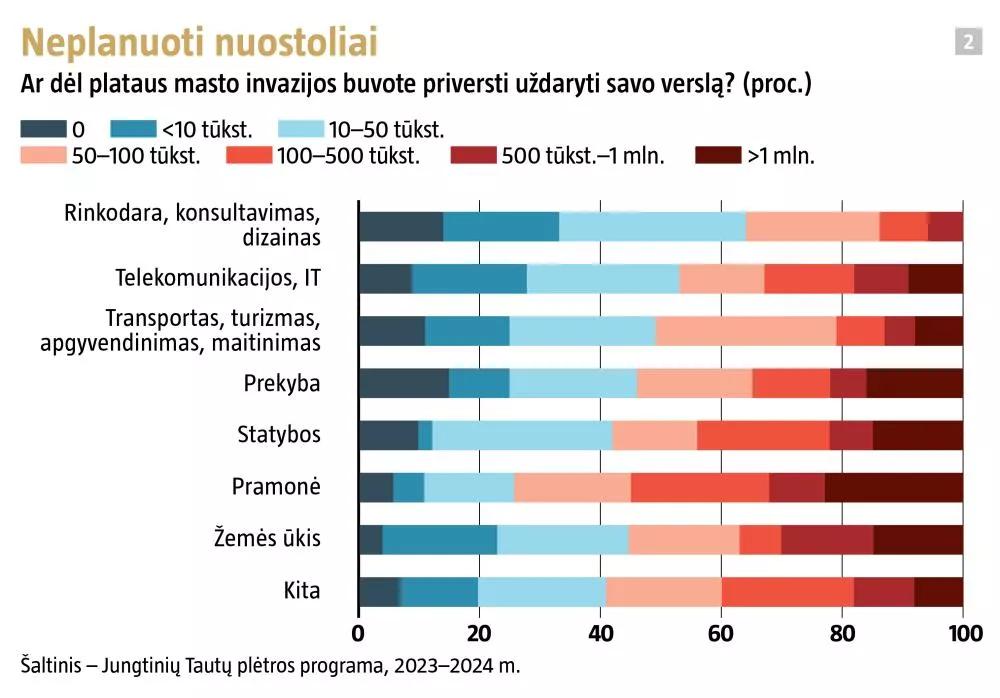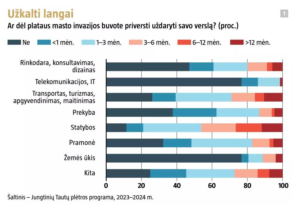 Jau po pusmečio nuo plataus masto invazijos pradžios 84 proc. iš veiklą nutraukusių Ukrainos verslų ją galėjo bent iš dalies pratęsti.